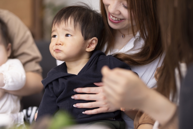赤ちゃん組は、ママにサポートしてもらいながら